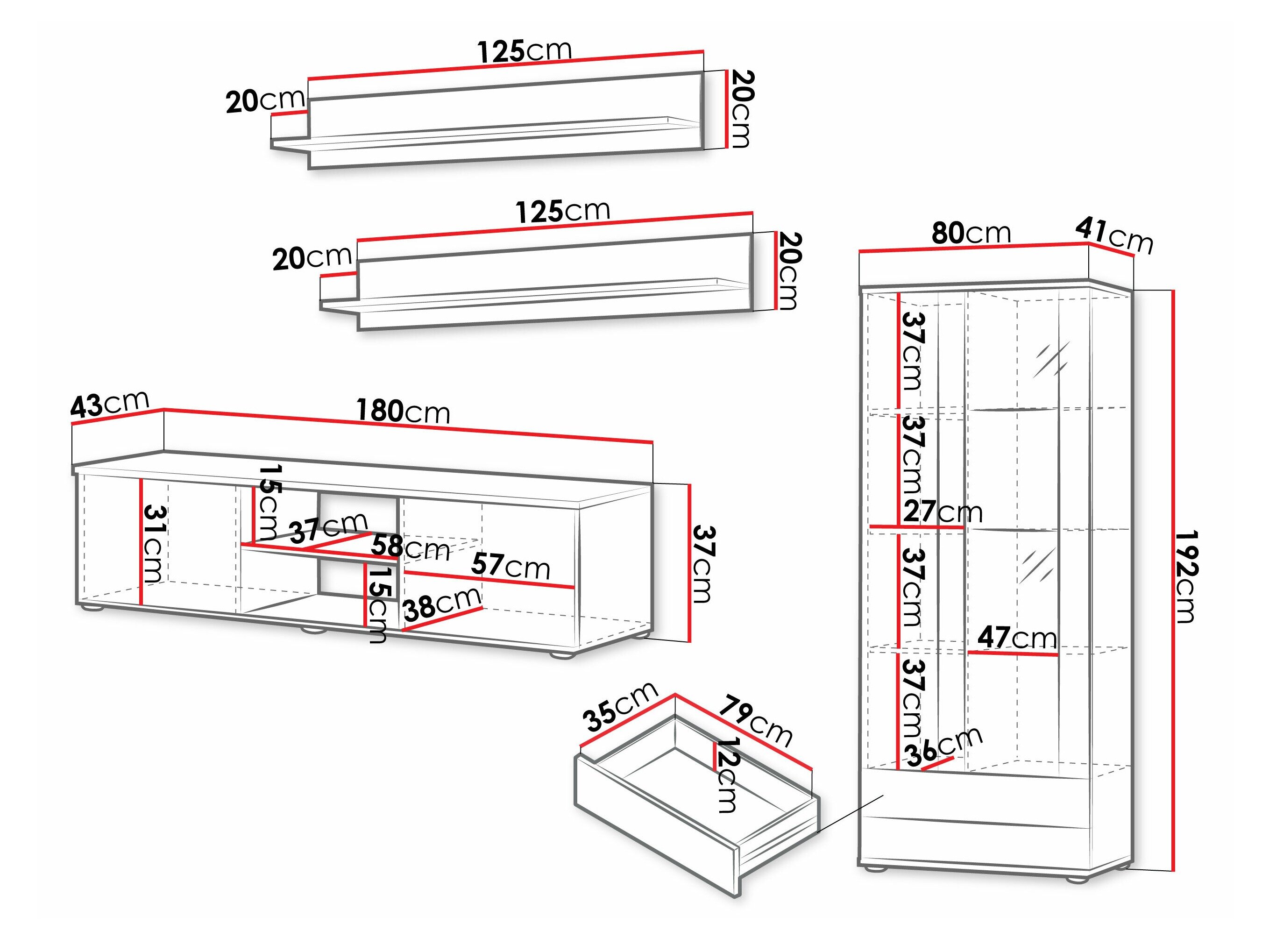 37 x 180 x 43 cm