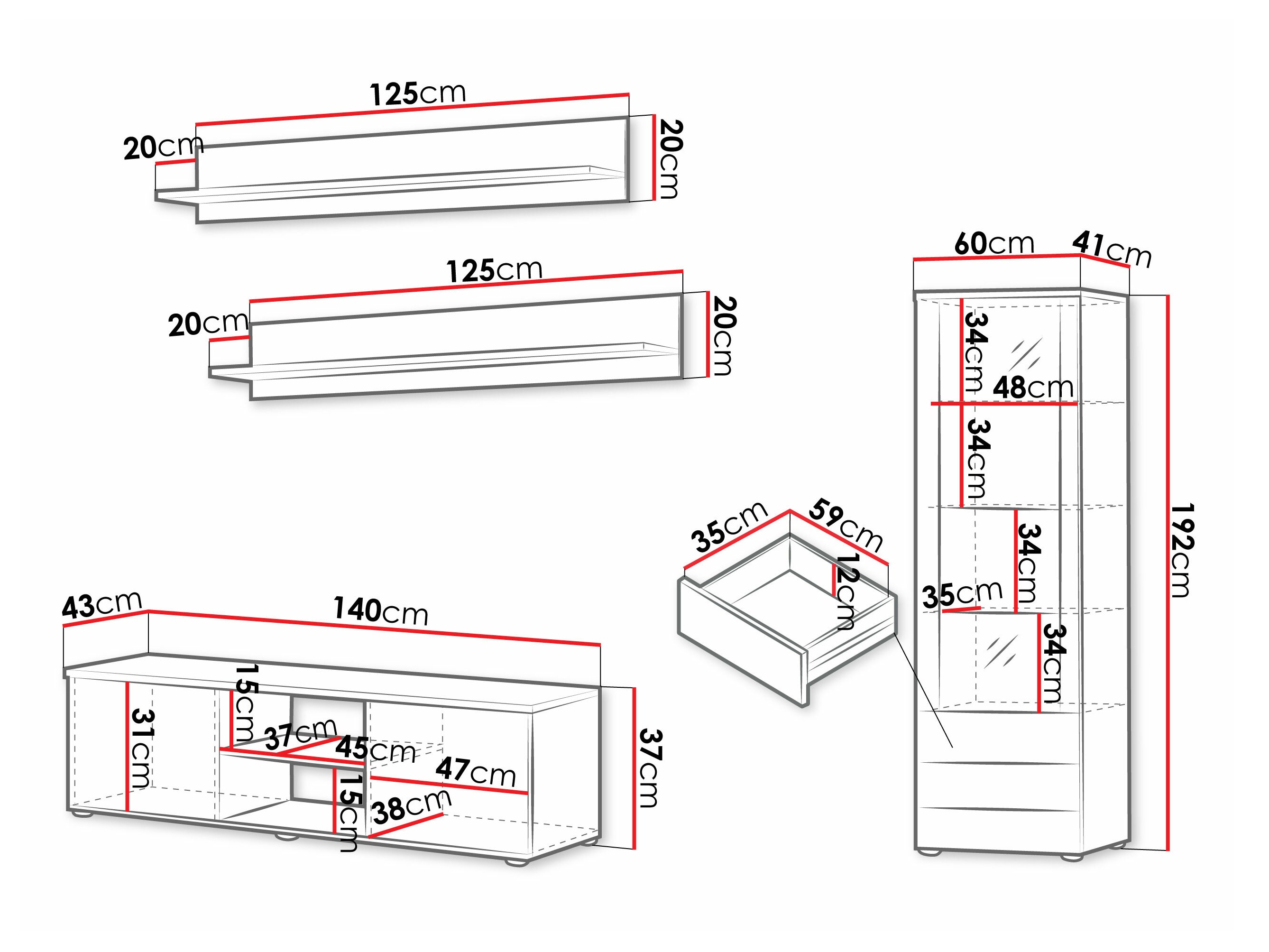 37 x 140 x 43 cm