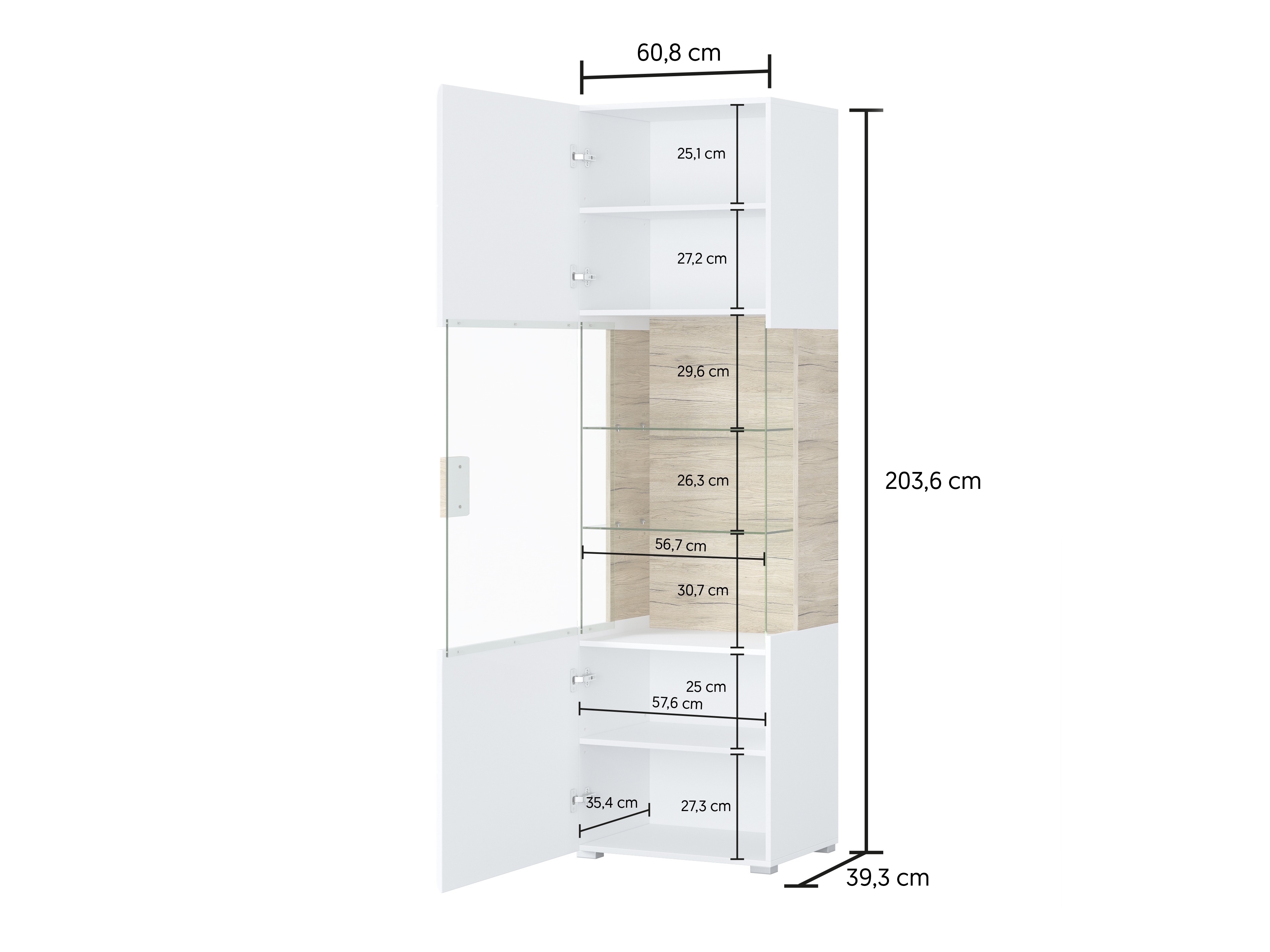 Die Möbelkollektion wurde für Personen geschaffen, die einfache und geometrische Möbel lieben. Einfache Formen heben sich durch trendige Farben und weiche Frontlinien ab. Der matte Möbelkorpus, kombiniert mit glänzenden Fronten und dem Eichenholzdekor „San Remo“, bildet eine sehr elegante Kombination und strahlt Raffinesse und Minimalismus aus. Die abgerundeten Kanten der Türen verleihen den Möbeln dieser Kollektion einen einzigartigen Charakter. Ergänzt wird das Ganze durch rechteckige Griffe und eine optionale energiesparende LED-Beleuchtung, die zusätzlich erworben werden kann.