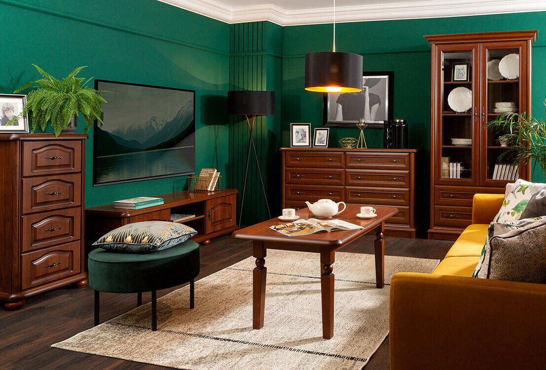 Die Vitrine ist sehr schön gestaltet. Ansonsten war der Aufbau nicht einfach und hat uns viel Zeit gekostet. Aber die Schubladen sind interessant, weil sie über ein Kompositionssystem verfügen, das keinen Kleber erfordert, und in der Mitte befindet sich eine Halterung, die den Boden der Schublade hält. Was mir gefällt. Der Kleiderschrank passt perfekt ins Wohnzimmer und ist wunderschön. Die Farbe ist so schön, dass sie Wärme im Raum erzeugt, was ein sehr schönes Gefühl ist.