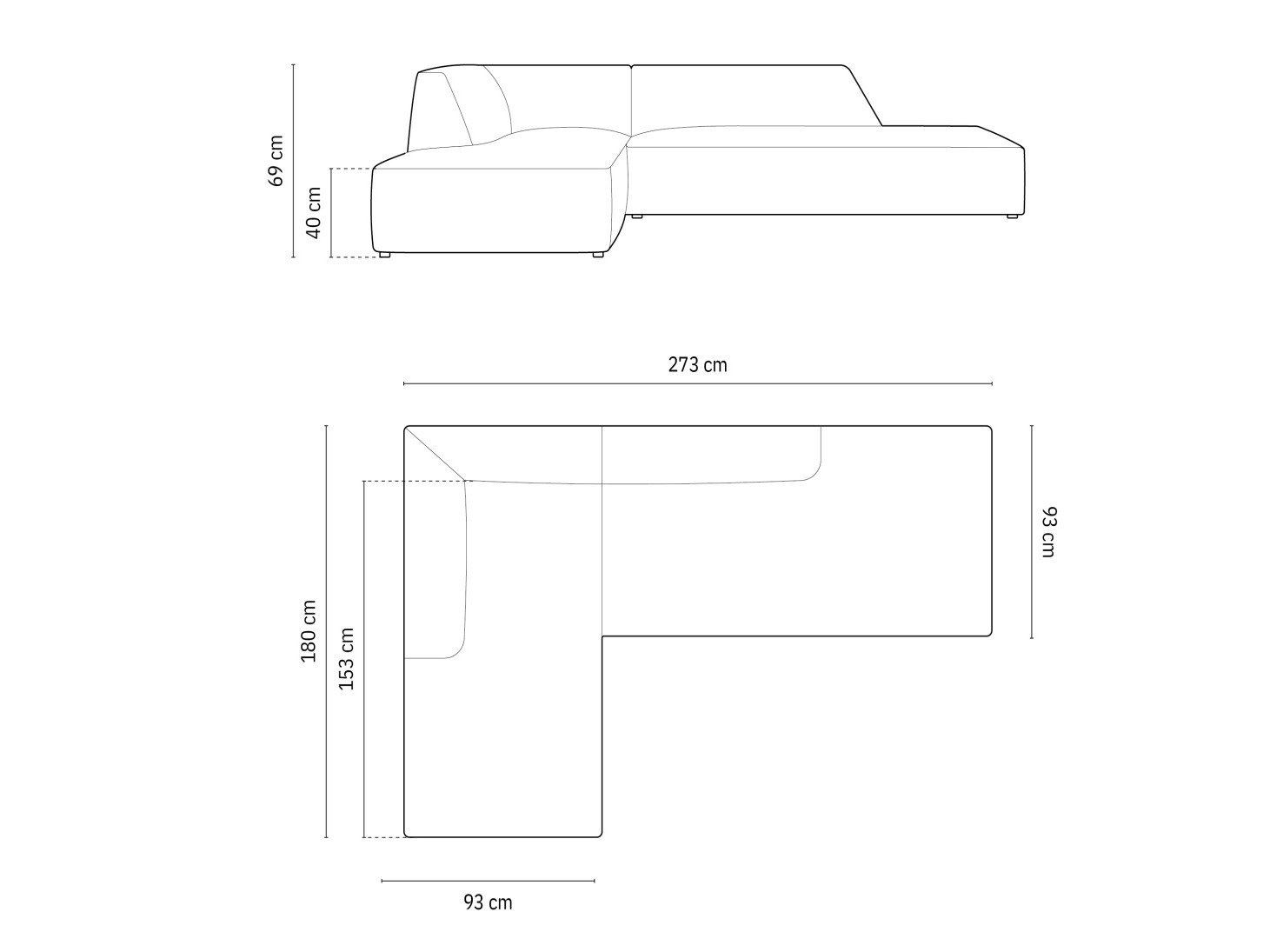Wenn Sie das Sofa von vorne betrachten, befindet sich der verlängerte Teil bzw. die Ecke der linksseitigen Option auf Ihrer linken Seite. Die gewählte Eckoption sollte den Fluss des Raums verbessern und eine einfache Bewegung innerhalb des Raums ermöglichen.