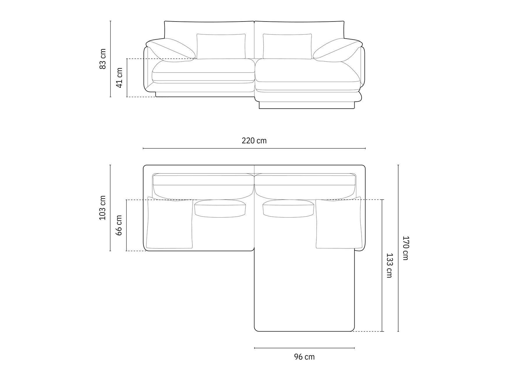 Wenn Sie das Sofa von vorne betrachten, befindet sich der verlängerte Teil bzw. die Ecke der rechtsseitigen Option auf Ihrer rechten Seite. Die gewählte Eckoption sollte den Fluss des Raums verbessern und eine einfache Bewegung innerhalb des Raums ermöglichen.