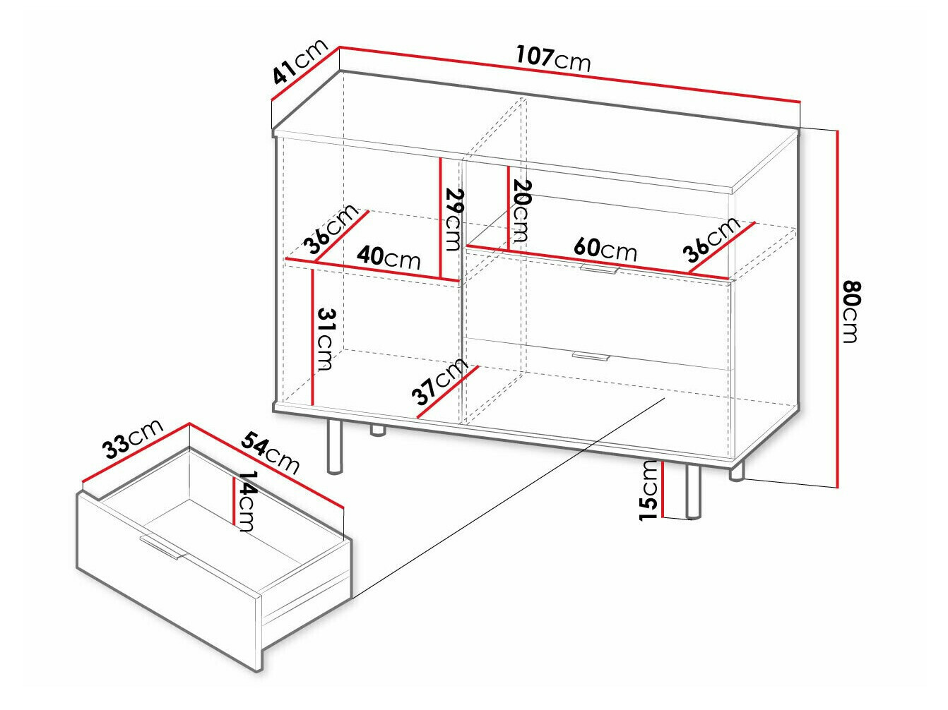 80 cm  150 cm  41 cm