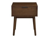 Ich liebe das Retro-Gefühl dieser Nachttische. Praktischer Platz auf dem Tisch und in einer Schublade zur Aufbewahrung kleiner Gegenstände am Bett