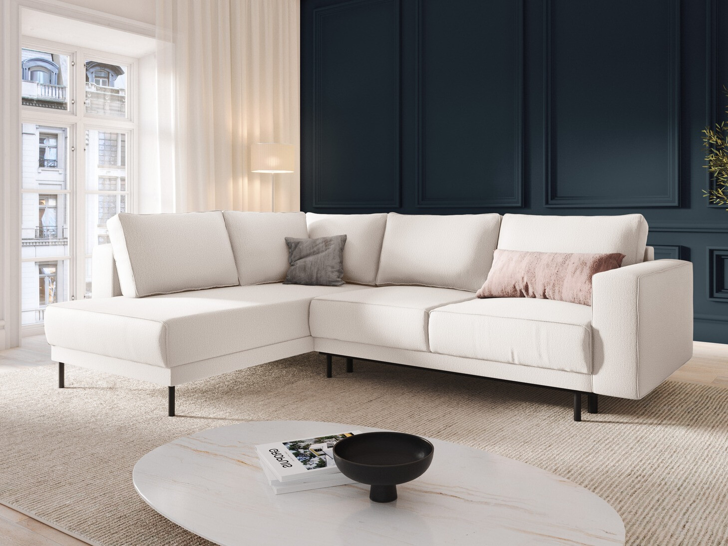Wenn Sie das Sofa von vorne betrachten, befindet sich der verlängerte Teil bzw. die Ecke der linksseitigen Option auf Ihrer linken Seite. Die gewählte Eckoption sollte den Fluss des Raums verbessern und eine einfache Bewegung innerhalb des Raums ermöglichen.