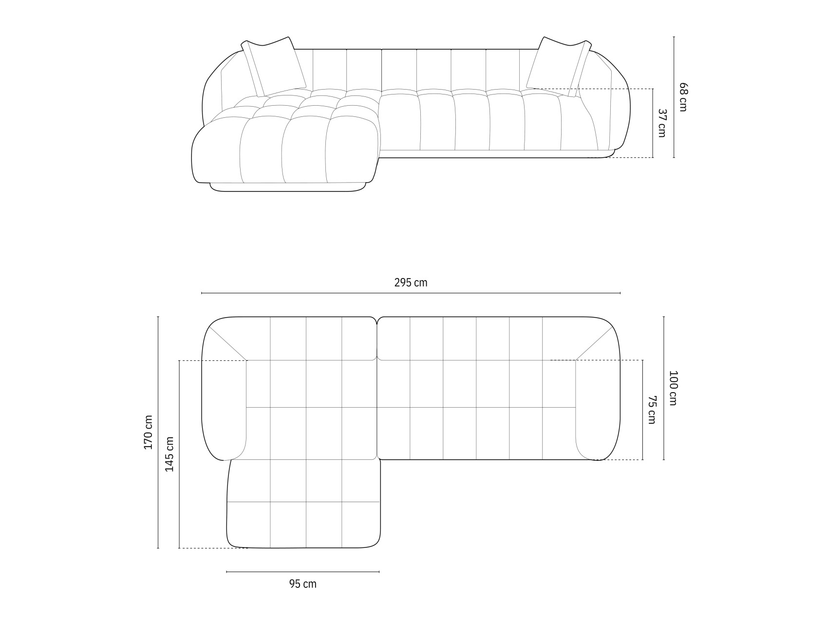 Wenn Sie das Sofa von vorne betrachten, befindet sich der verlängerte Teil bzw. die Ecke der linksseitigen Option auf Ihrer linken Seite. Die gewählte Eckoption sollte den Fluss des Raums verbessern und eine einfache Bewegung innerhalb des Raums ermöglichen.