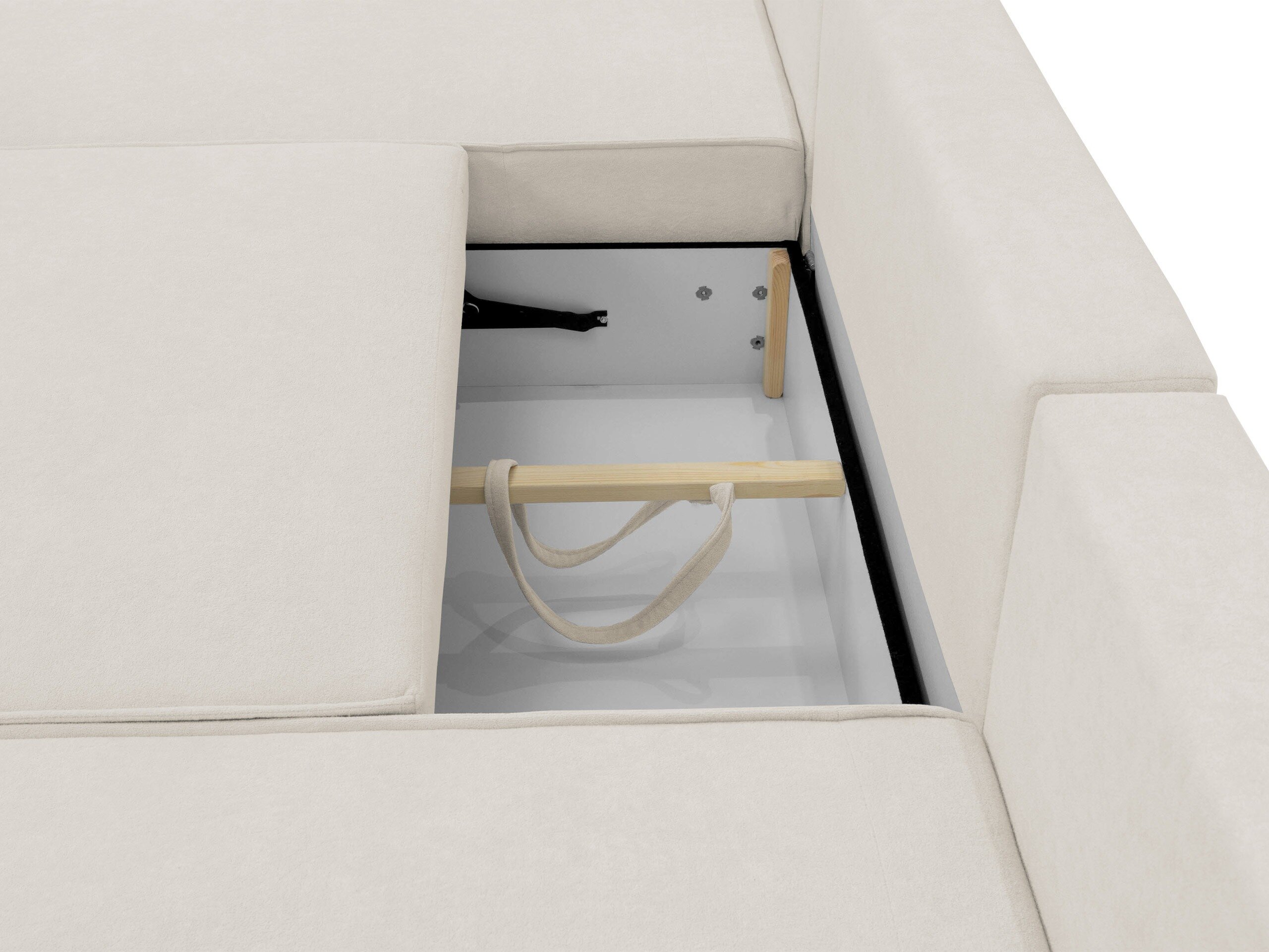 Dieser Mechanismus ist insofern einzigartig, als sich der Teil, der sich bewegt, den Boden nicht berührt, wodurch der Boden vor möglichen Kratzern geschützt wird. Heben Sie einfach den Sitz an und ziehen Sie ihn leicht zu sich heran. Dann senken Sie die Rückenlehne des Möbels ab, um einen Platz zum Schlafen vorzubereiten.