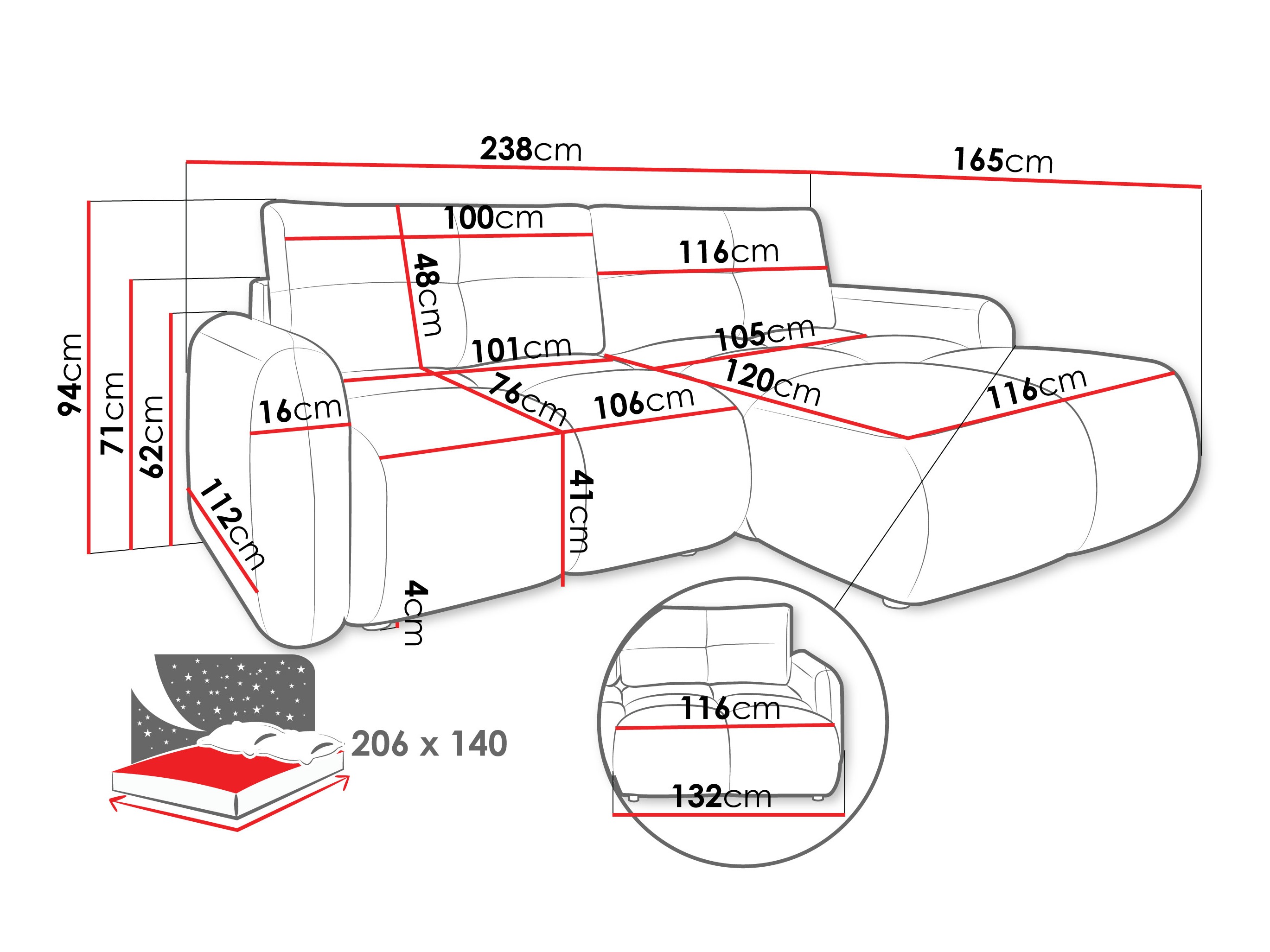 82 cm  244 cm  145 cm