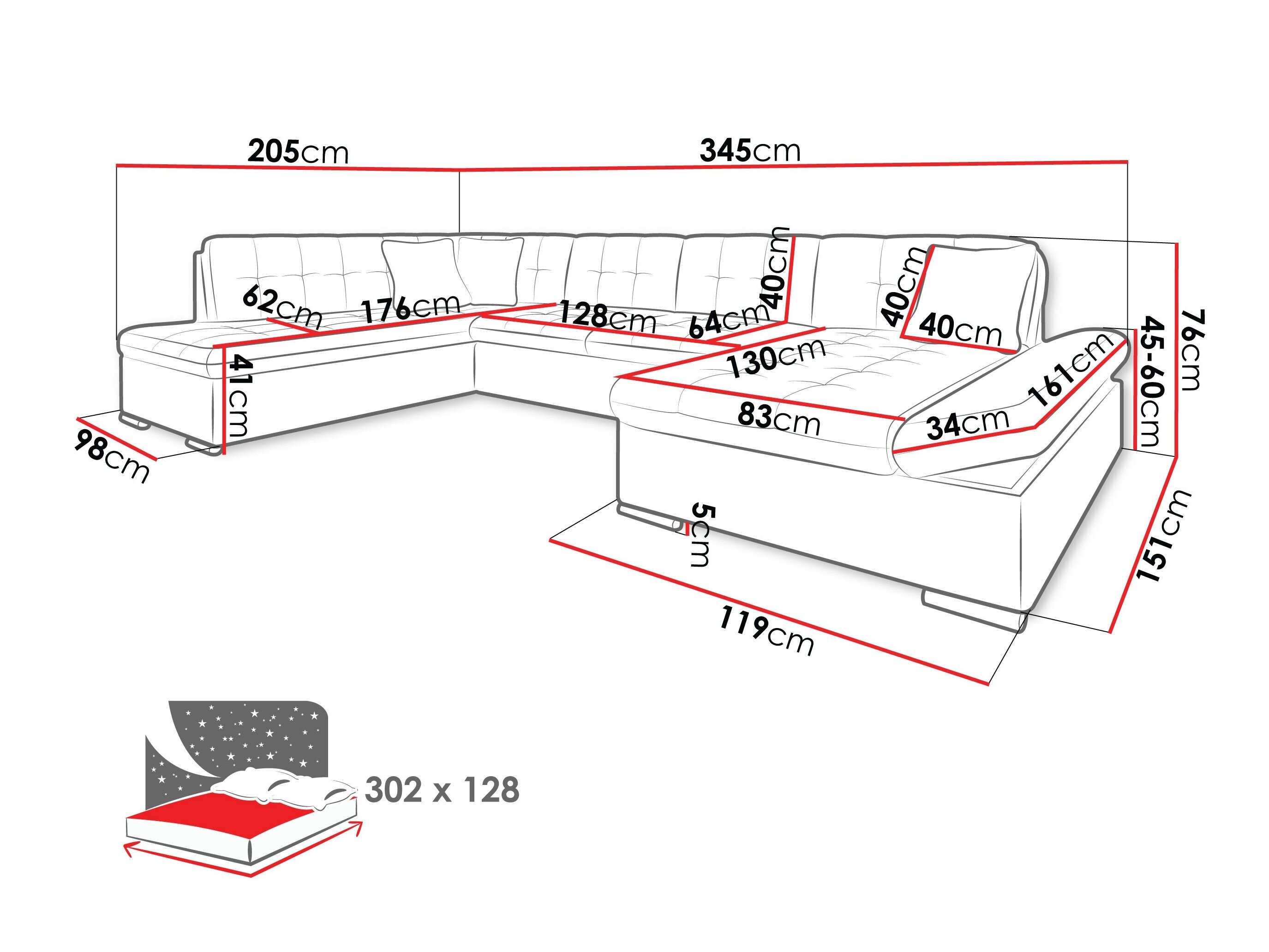 Breite des Schlafbereichs: