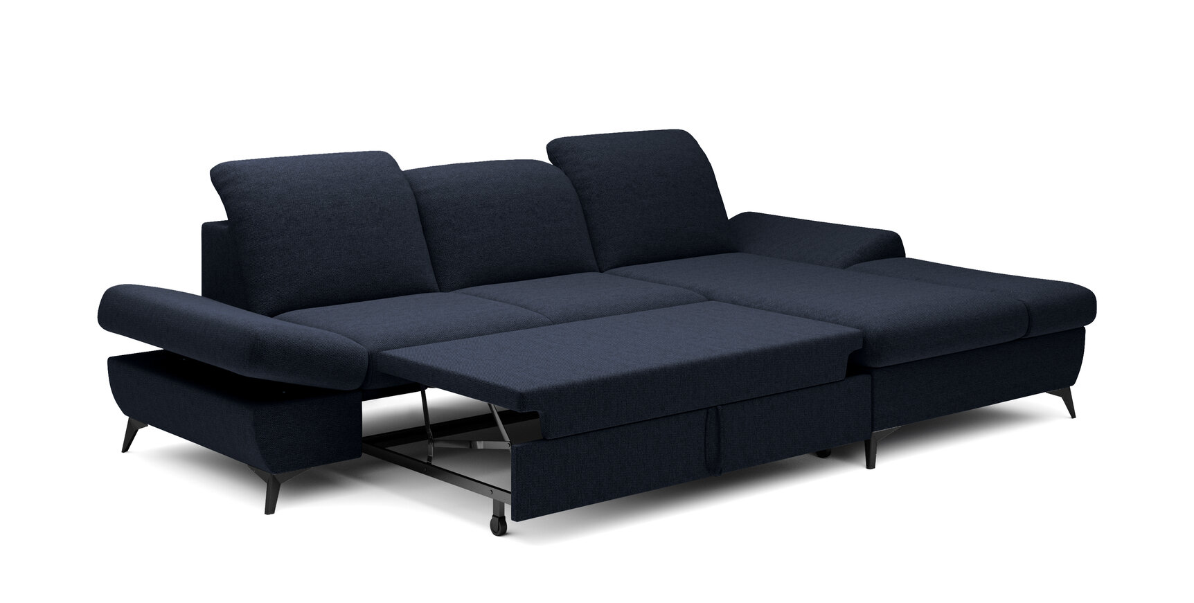 Wenn Sie das Sofa von vorne betrachten, befindet sich der verlängerte Teil bzw. die Ecke der rechtsseitigen Option auf Ihrer rechten Seite. Die gewählte Eckoption sollte den Fluss des Raums verbessern und eine einfache Bewegung innerhalb des Raums ermöglichen.