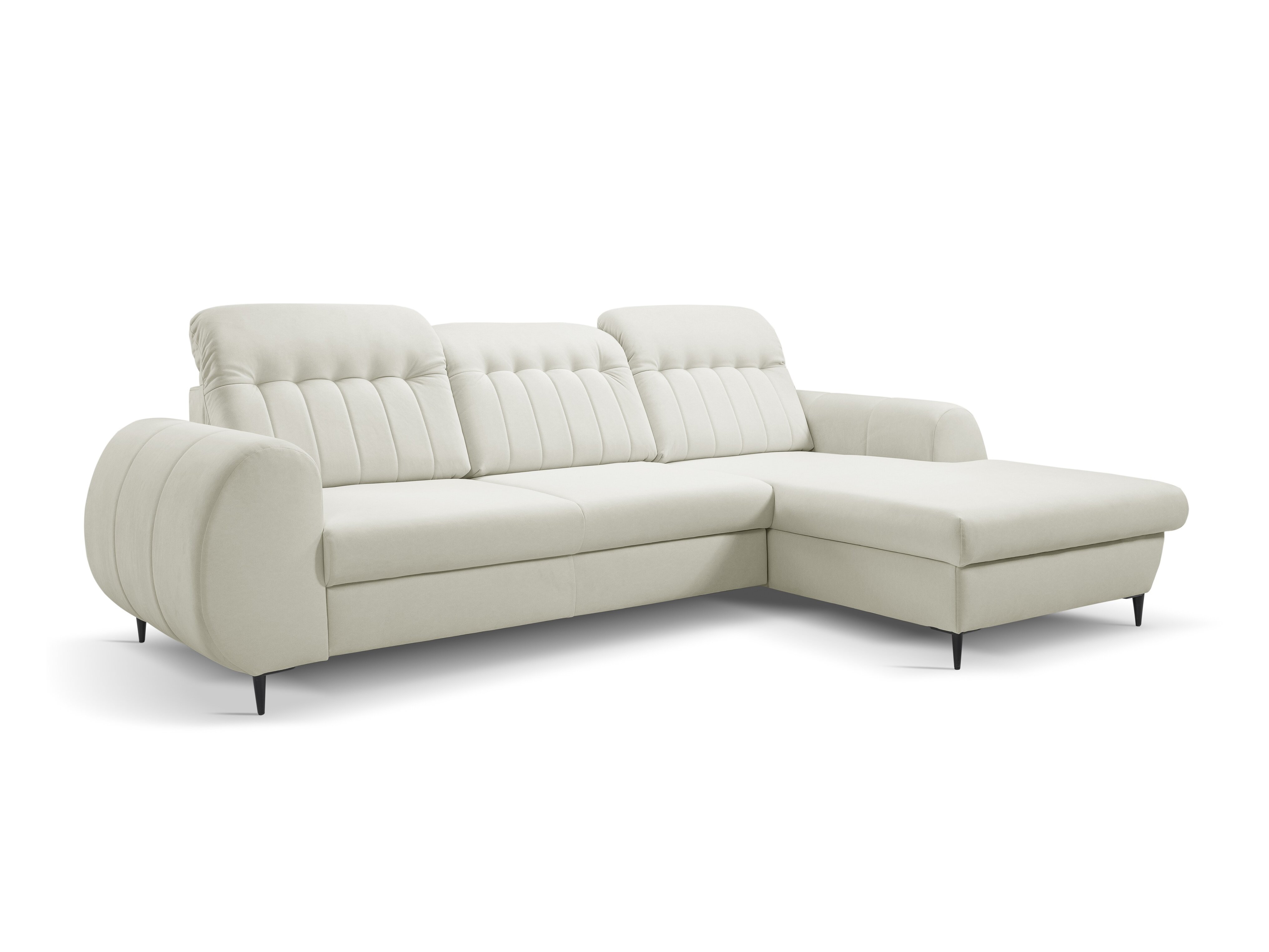 Wenn Sie das Sofa von vorne betrachten, befindet sich der verlängerte Teil bzw. die Ecke der rechtsseitigen Option auf Ihrer rechten Seite. Die gewählte Eckoption sollte den Fluss des Raums verbessern und eine einfache Bewegung innerhalb des Raums ermöglichen.