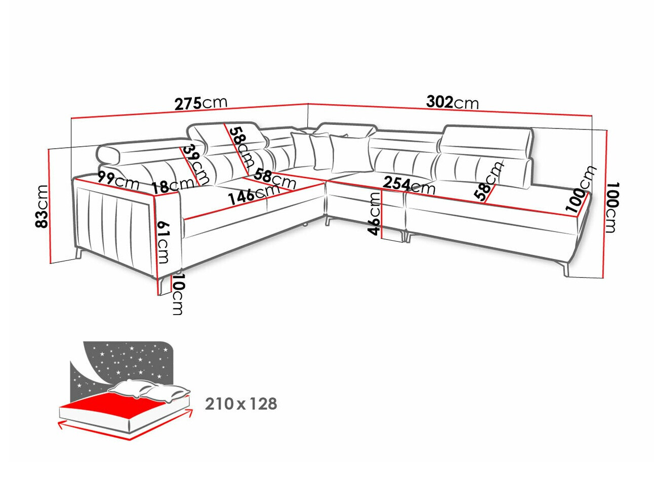 Wenn Sie das Sofa von vorne betrachten, befindet sich der verlängerte Teil bzw. die Ecke der linksseitigen Option auf Ihrer linken Seite. Die gewählte Eckoption sollte den Fluss des Raums verbessern und eine einfache Bewegung innerhalb des Raums ermöglichen.