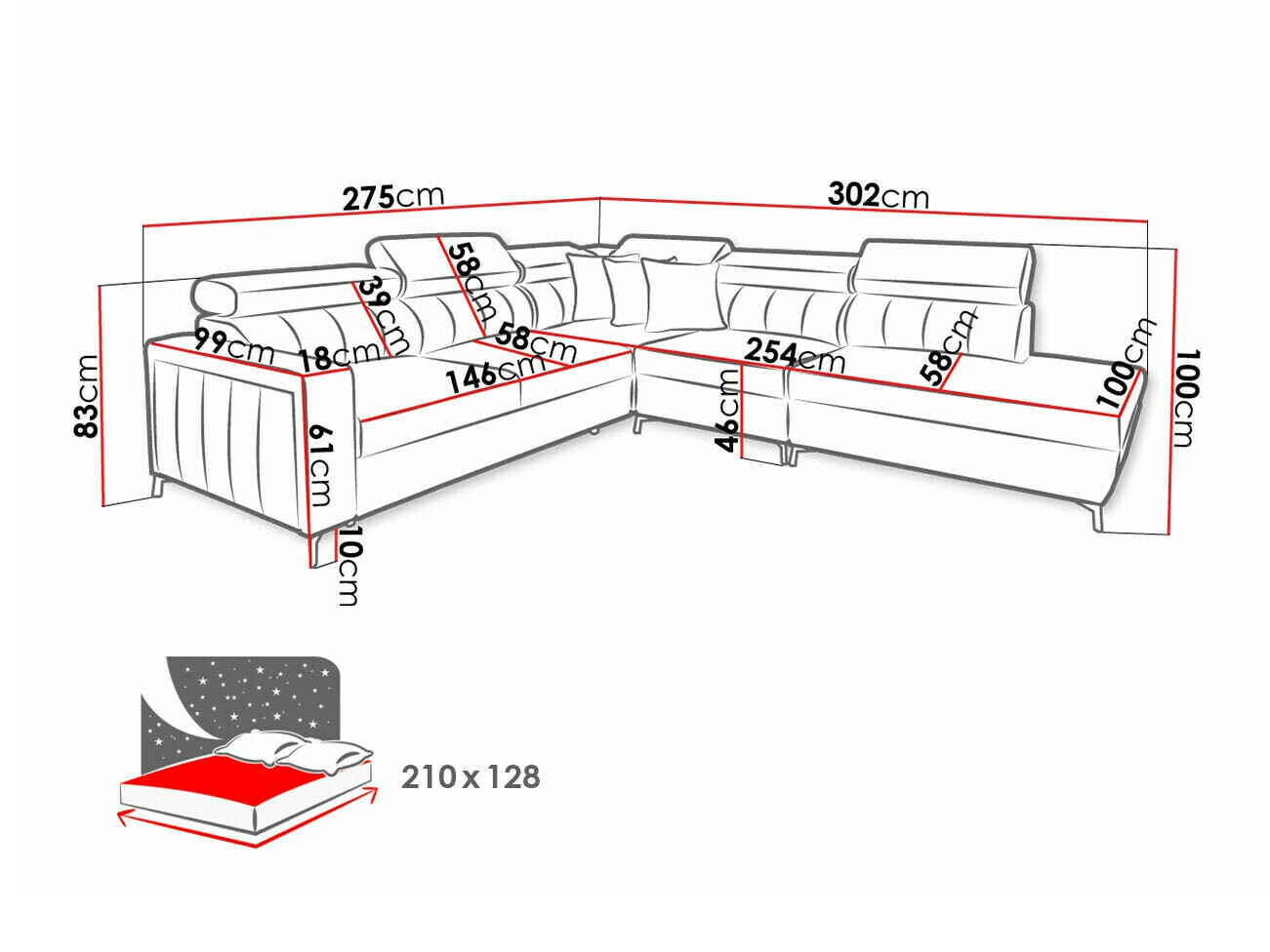83 cm  275 cm  198 cm