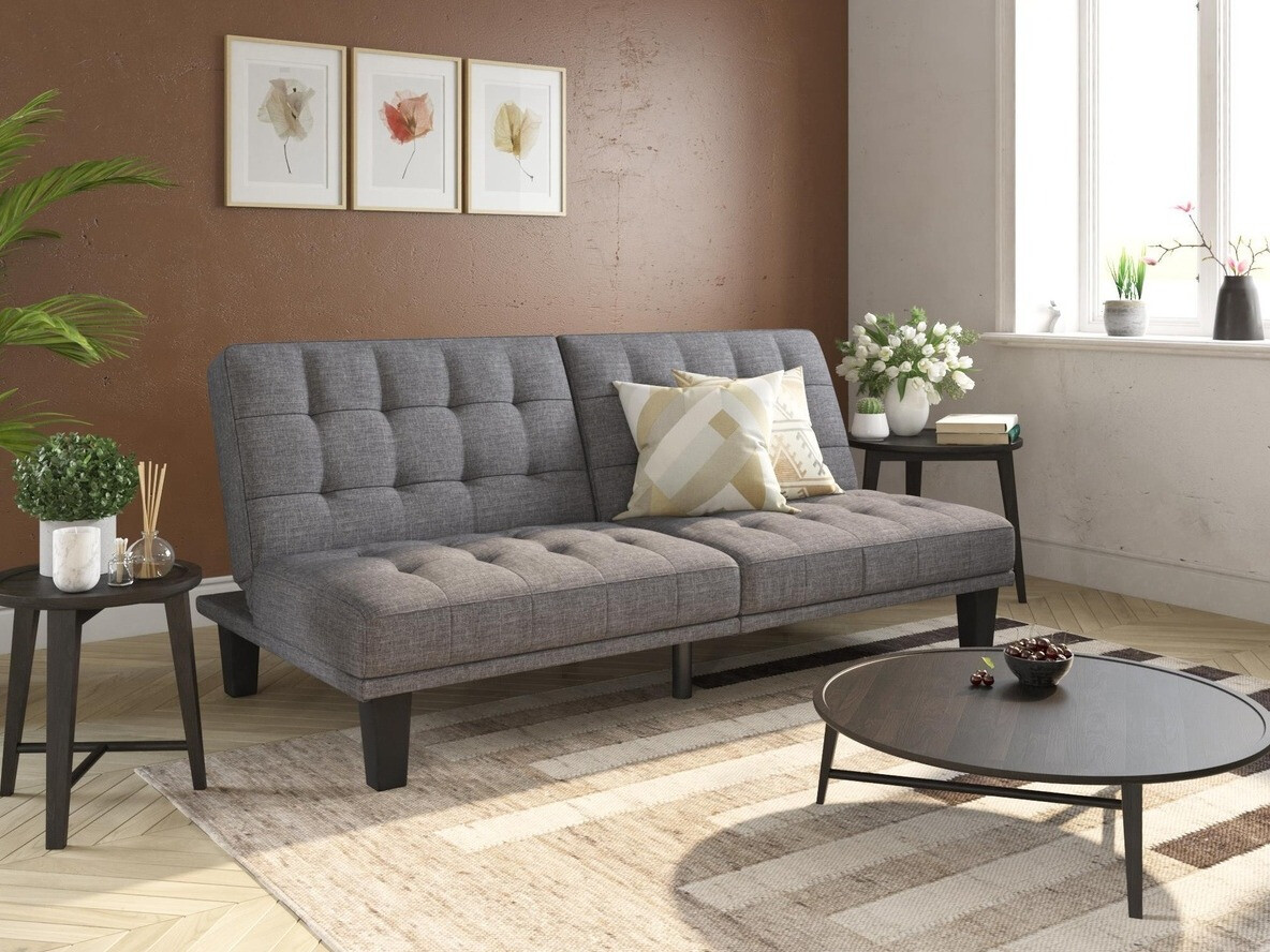 Dieser einfache Schlafmechanismus ist extrem leicht zu bedienen. Zwei Handgriffe genügen, und das Möbelstück ist schlafbereit. Ziehen Sie die Rückenlehne zu sich heran, bis Sie eine Arretierung spüren, und senken Sie sie dann ab, so dass sich das Möbelstück vollständig entfaltet. Um das Möbelstück wieder in seine ursprüngliche Position zu bringen, wiederholen Sie einfach die Schritte. Wir empfehlen, Möbel mit dieser Schlaffunktion von der Wand entfernt aufzustellen.