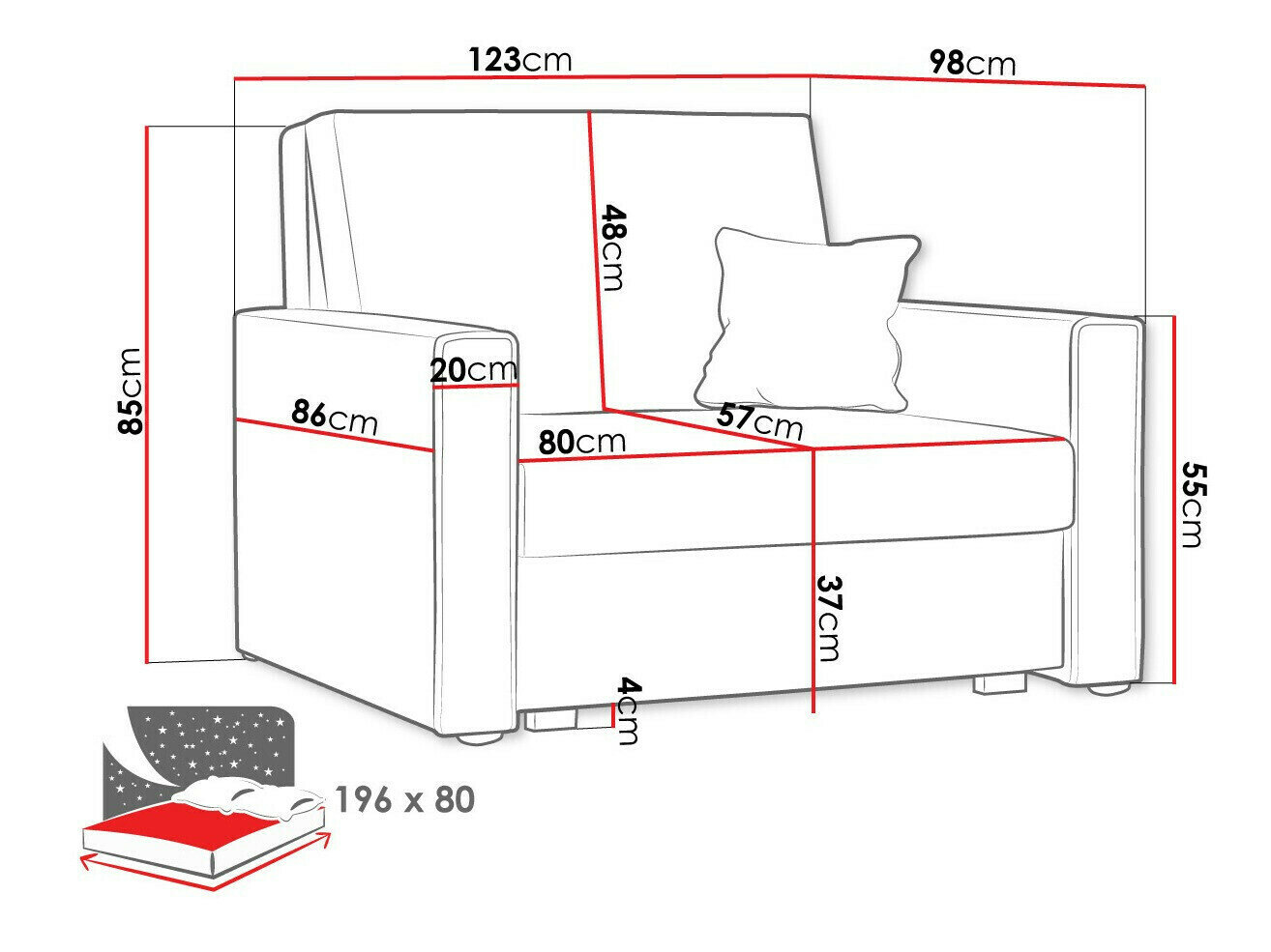 Dieser Mechanismus ist insofern einzigartig, als sich der Teil, der sich bewegt, den Boden nicht berührt, wodurch der Boden vor möglichen Kratzern geschützt wird. Heben Sie einfach den Sitz an und ziehen Sie ihn leicht zu sich heran. Dann senken Sie die Rückenlehne des Möbels ab, um einen Platz zum Schlafen vorzubereiten.
