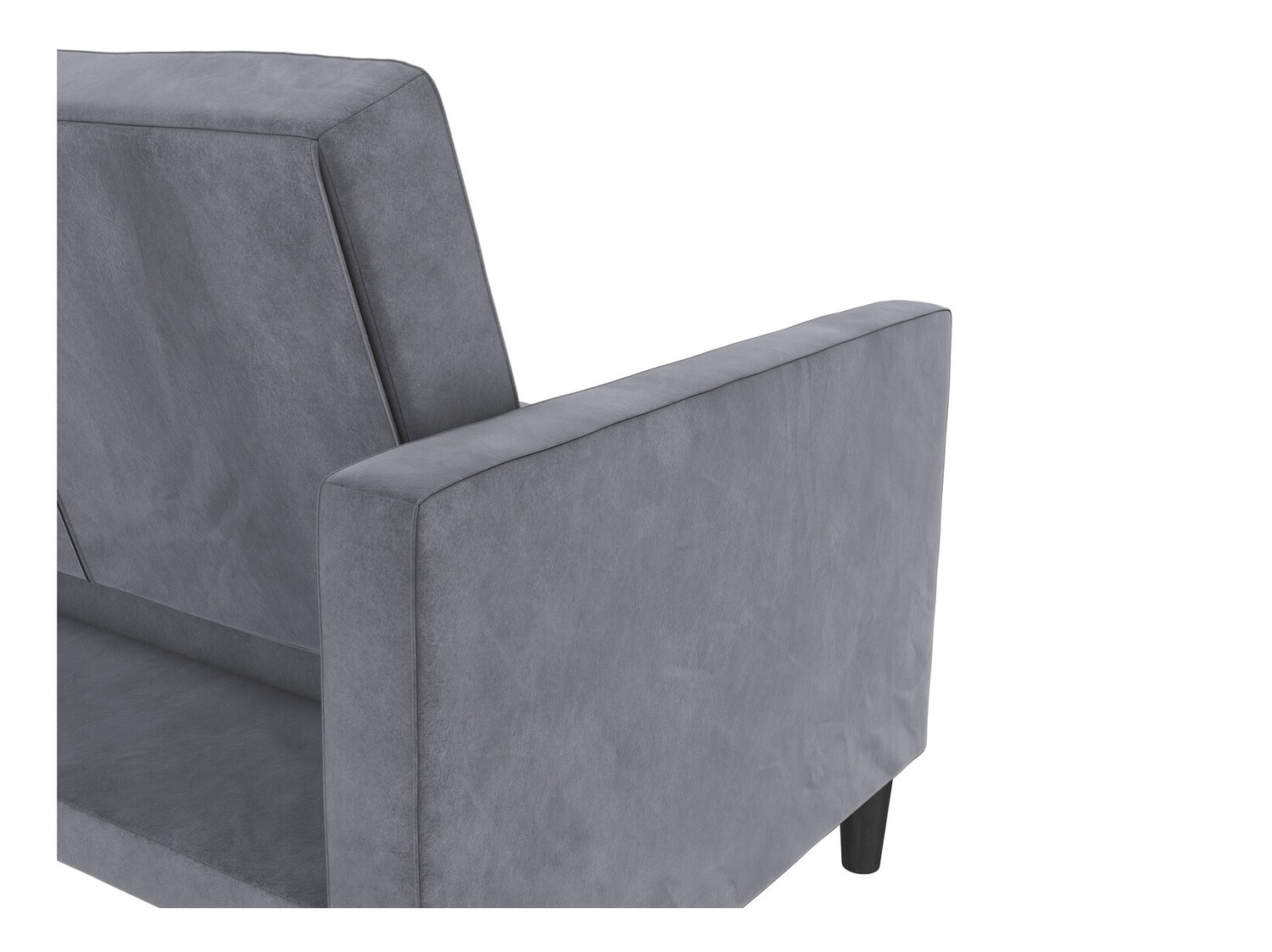 Dieser einfache Schlafmechanismus ist extrem leicht zu bedienen. Zwei Handgriffe genügen, und das Möbelstück ist schlafbereit. Ziehen Sie die Rückenlehne zu sich heran, bis Sie eine Arretierung spüren, und senken Sie sie dann ab, so dass sich das Möbelstück vollständig entfaltet. Um das Möbelstück wieder in seine ursprüngliche Position zu bringen, wiederholen Sie einfach die Schritte. Wir empfehlen, Möbel mit dieser Schlaffunktion von der Wand entfernt aufzustellen.