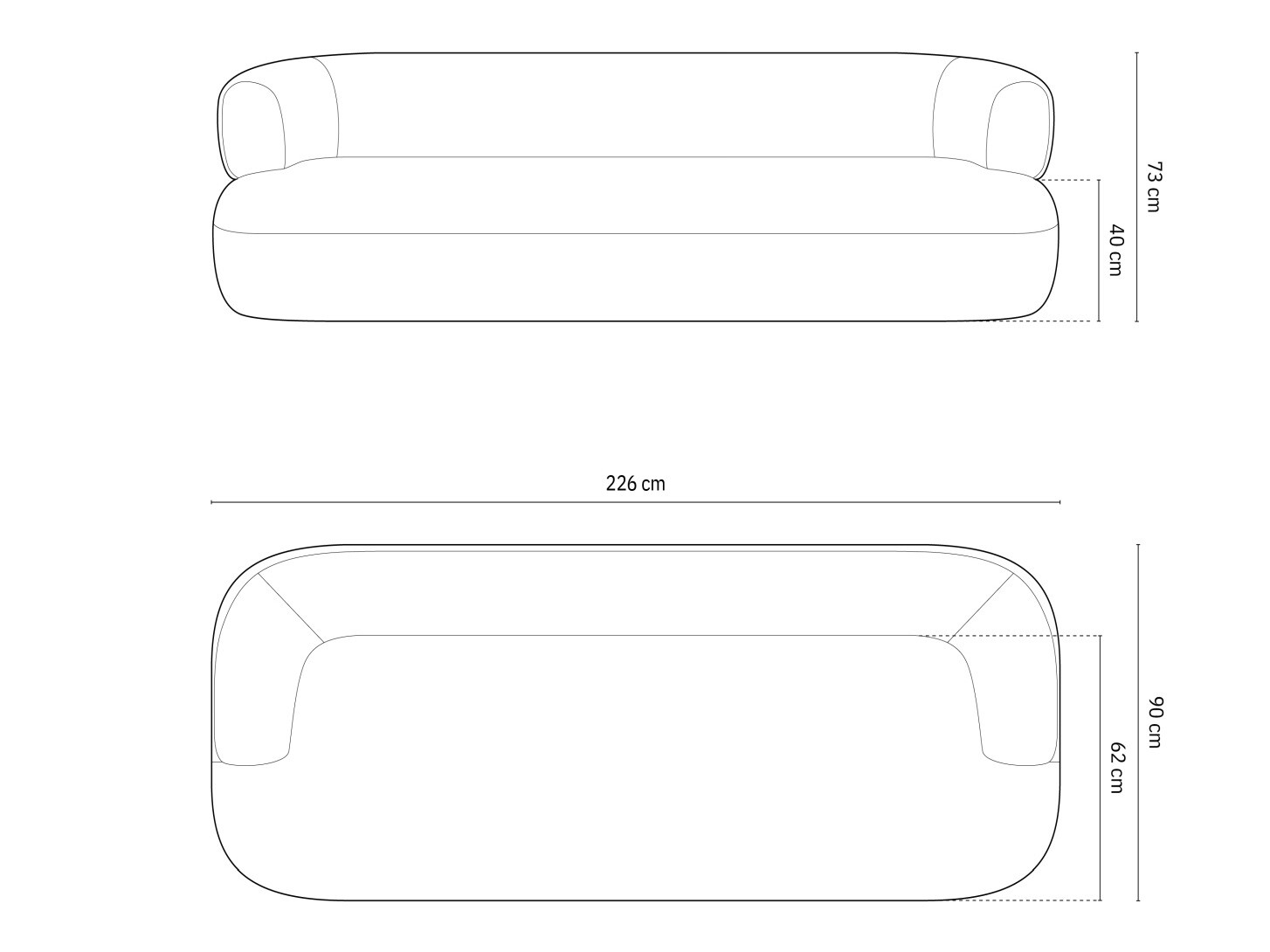 Weicher Stoff mit dezentem Glanz und samtiger Oberfläche, die je nach Lichteinfall Farbverläufe zeigt. «Oeko-Tex»-zertifiziert und damit frei von allergenen Stoffen sowie «Reach»-zertifiziert – also ohne gesundheitsschädliche Chemikalien. Zur Pflege der Oberfläche empfehlen sich ausschliesslich sanfte Reinigungsmittel für Polsterstoffe.