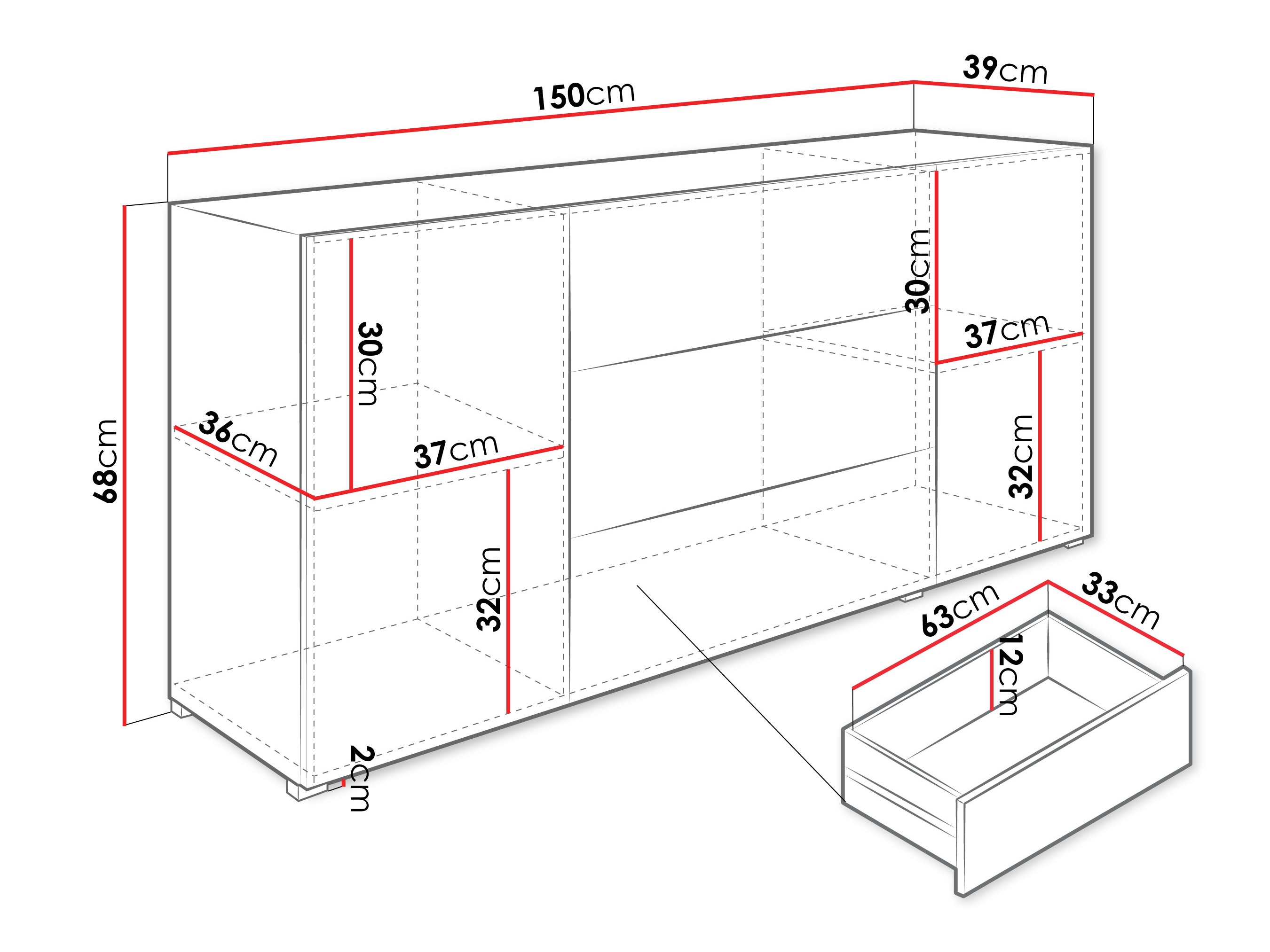 68 cm  150 cm  39 cm