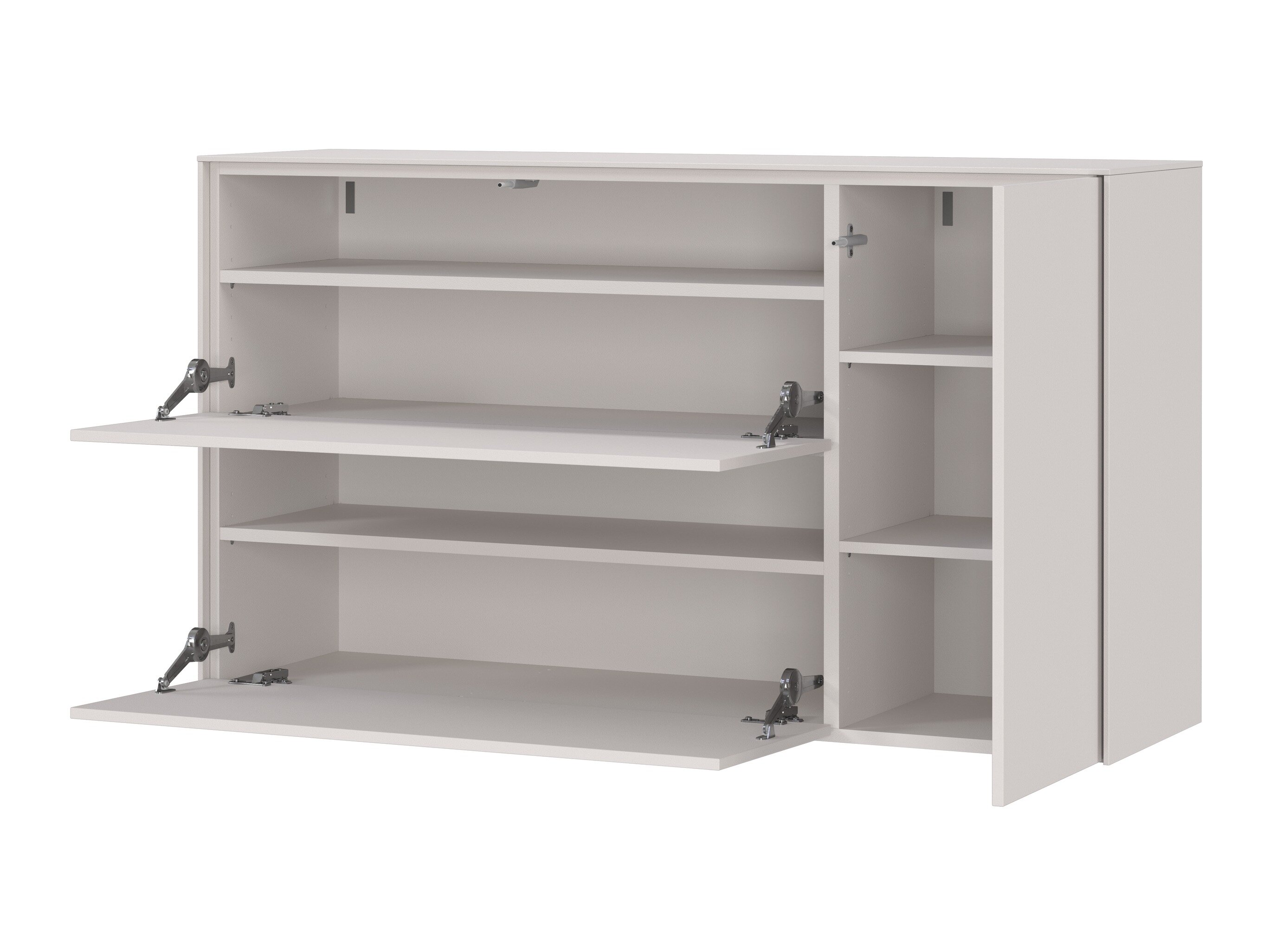 Öffnen Sie Türen und Schubladen mit nur einer Berührung. Das «Push to Open» -Öffnungsmechanismus besteht aus einer Feder und einem Magnetmechanismus zum Drücken und Halten der Tür. Ausserdem gibt es Scharniere mit speziellen Gasdruckfedern zum Öffnen der Tür. Dank diesem Mechanismus benötigen die Möbel keine Griffe. Sie können Türen und Schubladen mit einem Klick öffnen und schliessen.